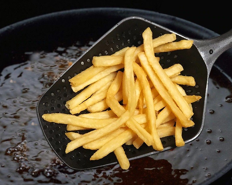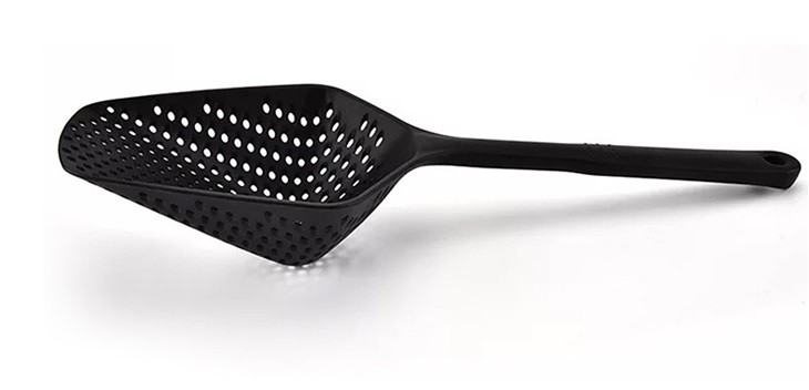 This plastic slotted spoon is a great and useful helper in the kitchen.