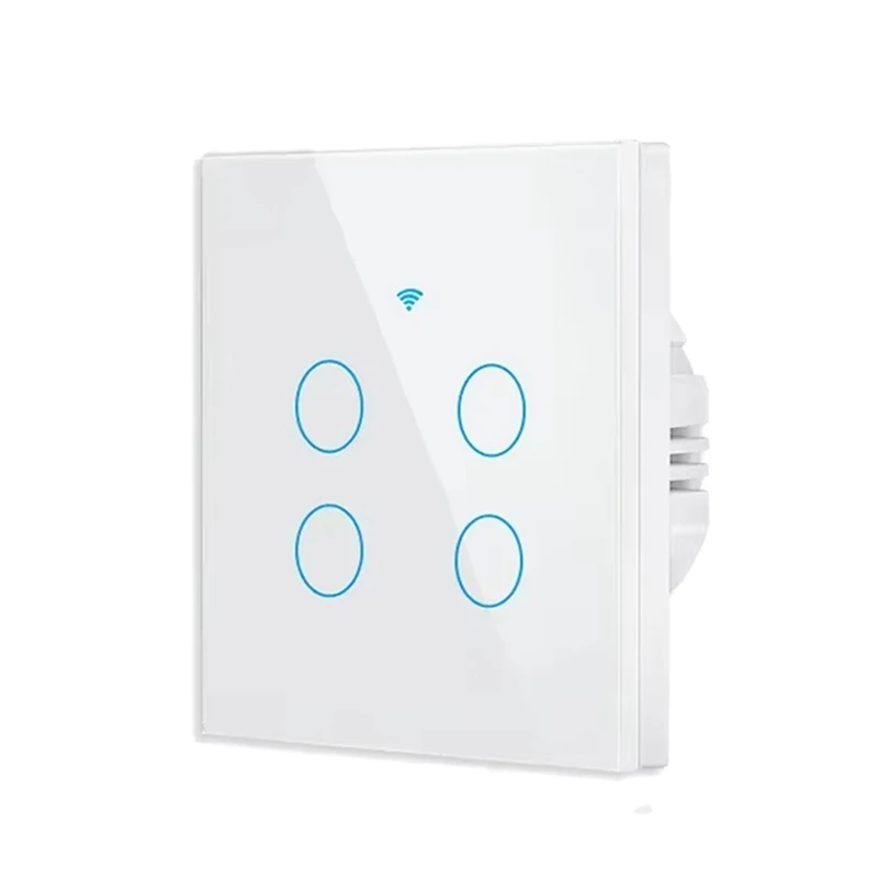 Home page Home page Home & Household Supplies Smart Home Smart Touch Wall Switch WiFi 220V 4 Gang with Control via iOS/Android App Compatible with 433MHz Glass Panel 8.6 x 8.6 cm
