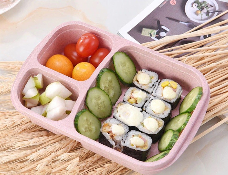 This snack box is made from wheat straw and is very practical.