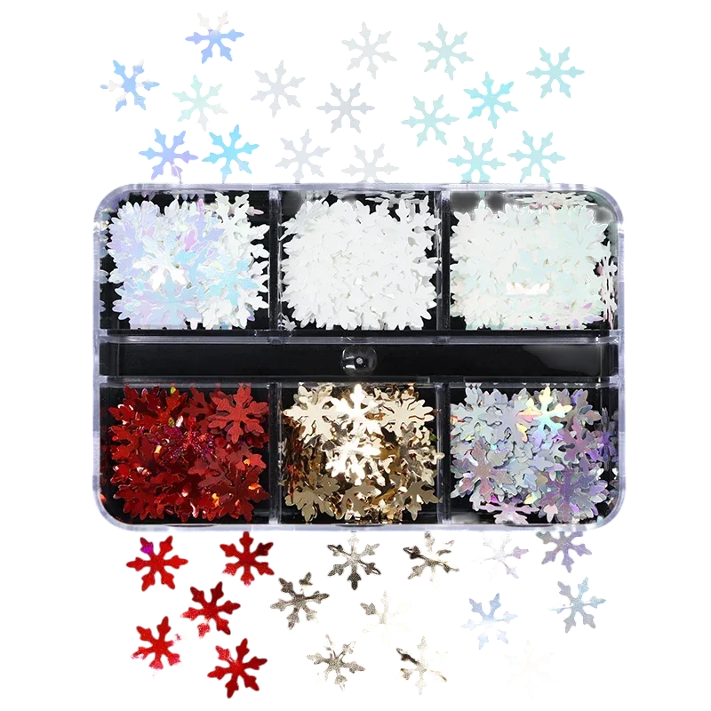 Snowflake Sequins 3-4 g Multicoloured Decorations Box with 6 Compartments Shiny Confetti for Decorating Christmas DIY Creative Crafting