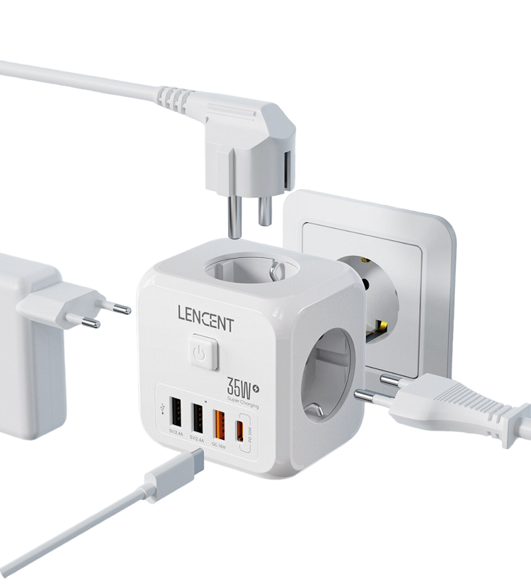 • Compact design: Thanks to its compact dimensions (7.7 x 7.7 x 6.3 cm), this socket cube easily fits into various spaces in your home or office. You can place it on a table, bedside table, desk, or anywhere else you need more electrical sockets and charging ports.