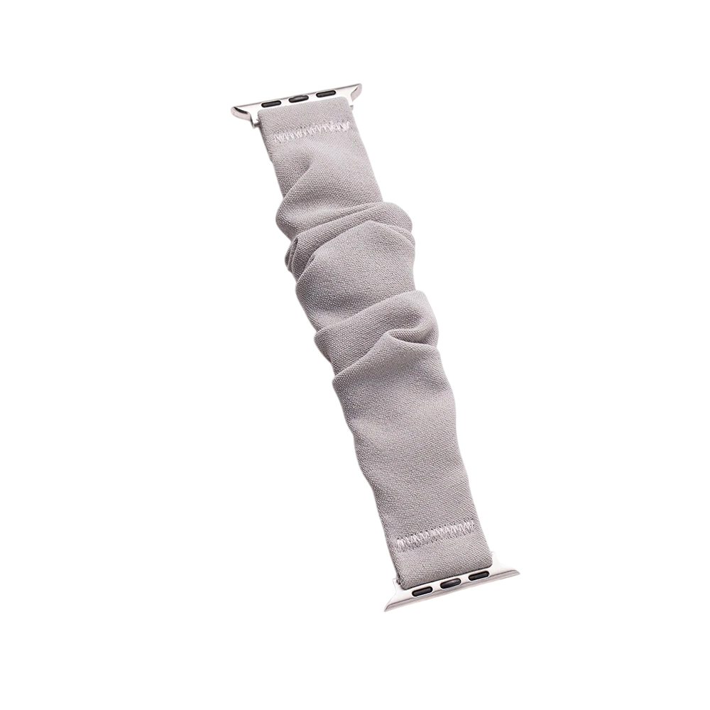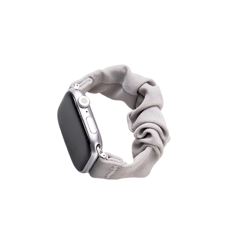 Grey elastic strap size S for Apple Watch 38, 40 and 41 mm. Compatible with models Series 1–9, SE and SE 2. Pleasant, lightweight and comfortable for all-day wear. Full description