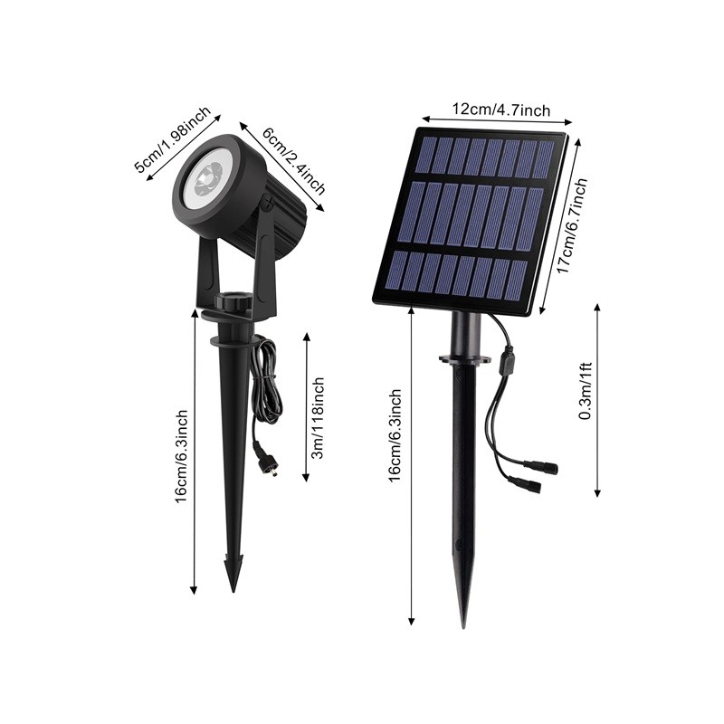 • Package contents: 1x solar LED spotlight, 1x solar panel with cable and holder, mounting accessories