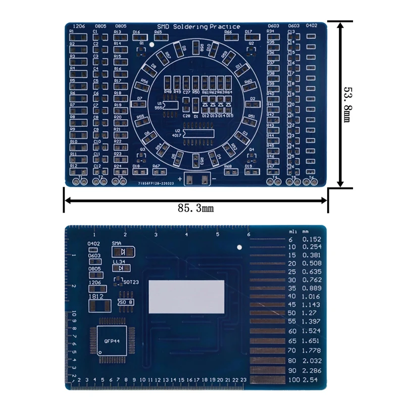 This soldering board educational kit is a great aid for anyone looking to learn the basics of electronics or improve their soldering skills. With a power supply of DC 3–5 V, it is safe for beginners and provides ample opportunities for experiments and developing personal projects. The large size of 85 x 54 cm offers plenty of space for comfortable work and practical organisation of components. The kit is ideal for both students and hobbyists who wish to enhance their skills and understand the functioning of electronic circuits.
