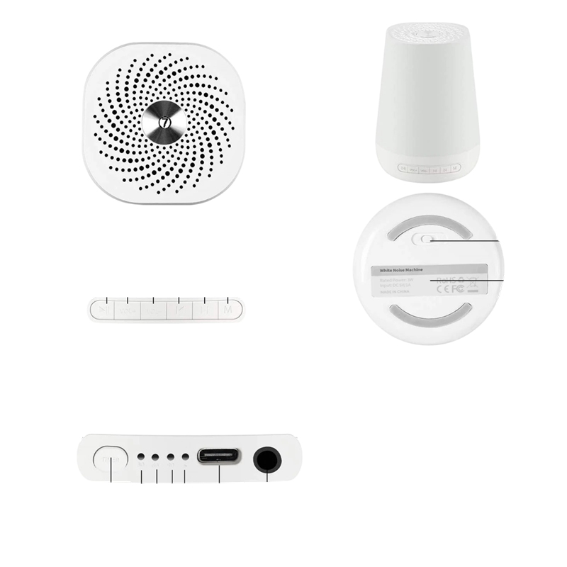 Device with white noise and 28 sounds for soothing babies. Night light, timer, and 1800 mAh battery for convenient home use. Full description