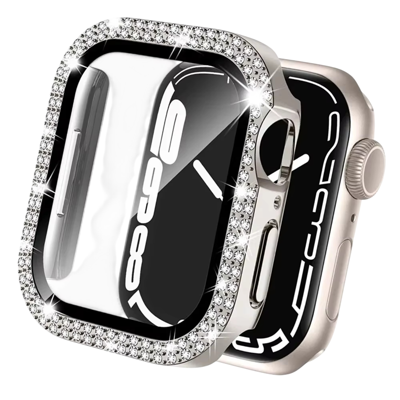 The stylish and practical protective case is the ideal solution for anyone who wants to protect their Apple Watch from everyday wear and tear. The combination of the protective case and tempered glass ensures comprehensive protection for both the display and edges of the watch. Thanks to precise processing, it fits perfectly on the watch while maintaining its elegant appearance. The sparkling design adds a unique and modern style to the watch. The case is designed to protect the device without restricting functionality or touch control.