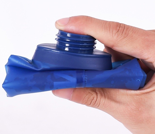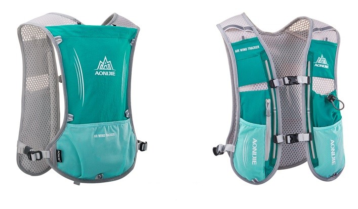 Running sports backpack with a 1.5 l reservoir and a 500 ml bottle.