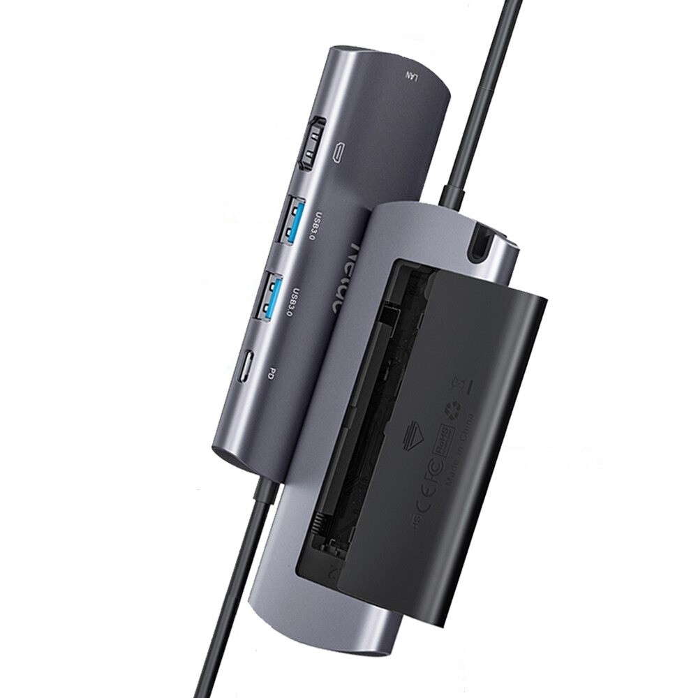 USB Hub: USB-C (female), 2x USB 3.0 (female), HDMI (female), RJ45 (female), M.2 NGFF slot