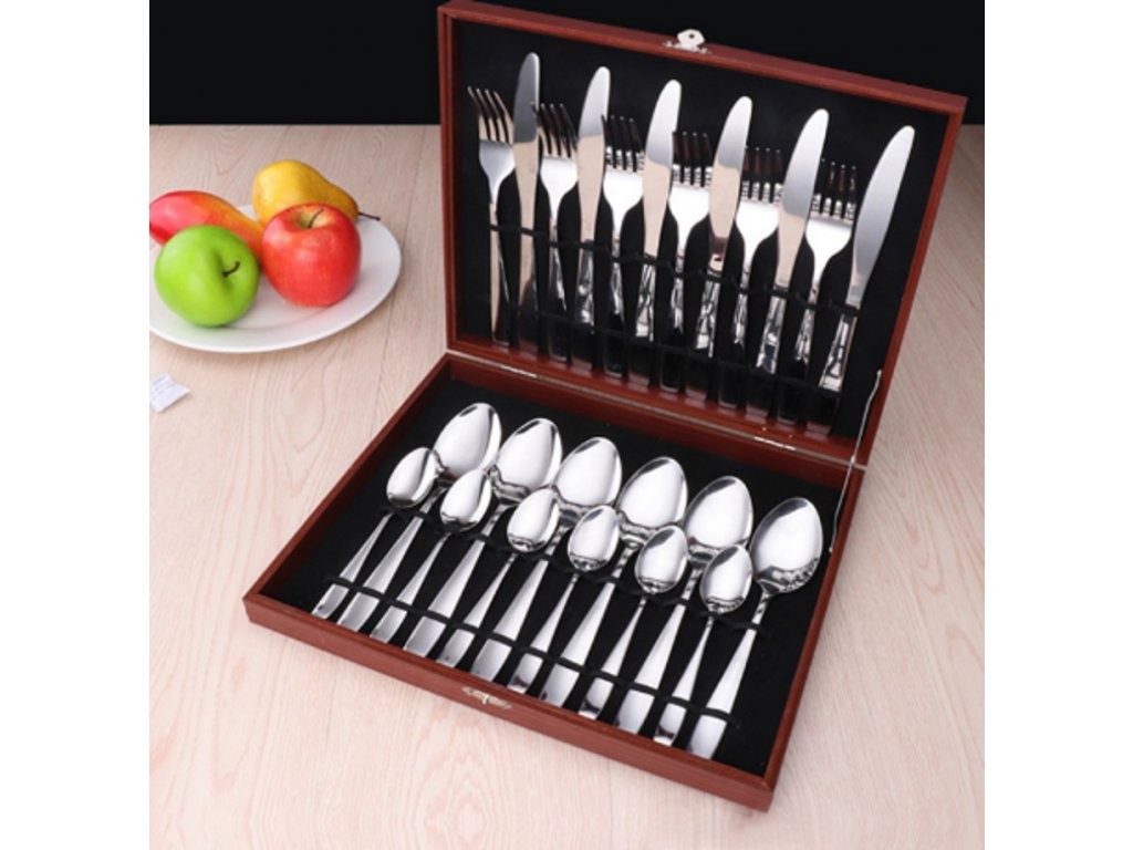 Contents: 6x knife, 6x spoon, 6x fork, 6x teaspoon (without case)