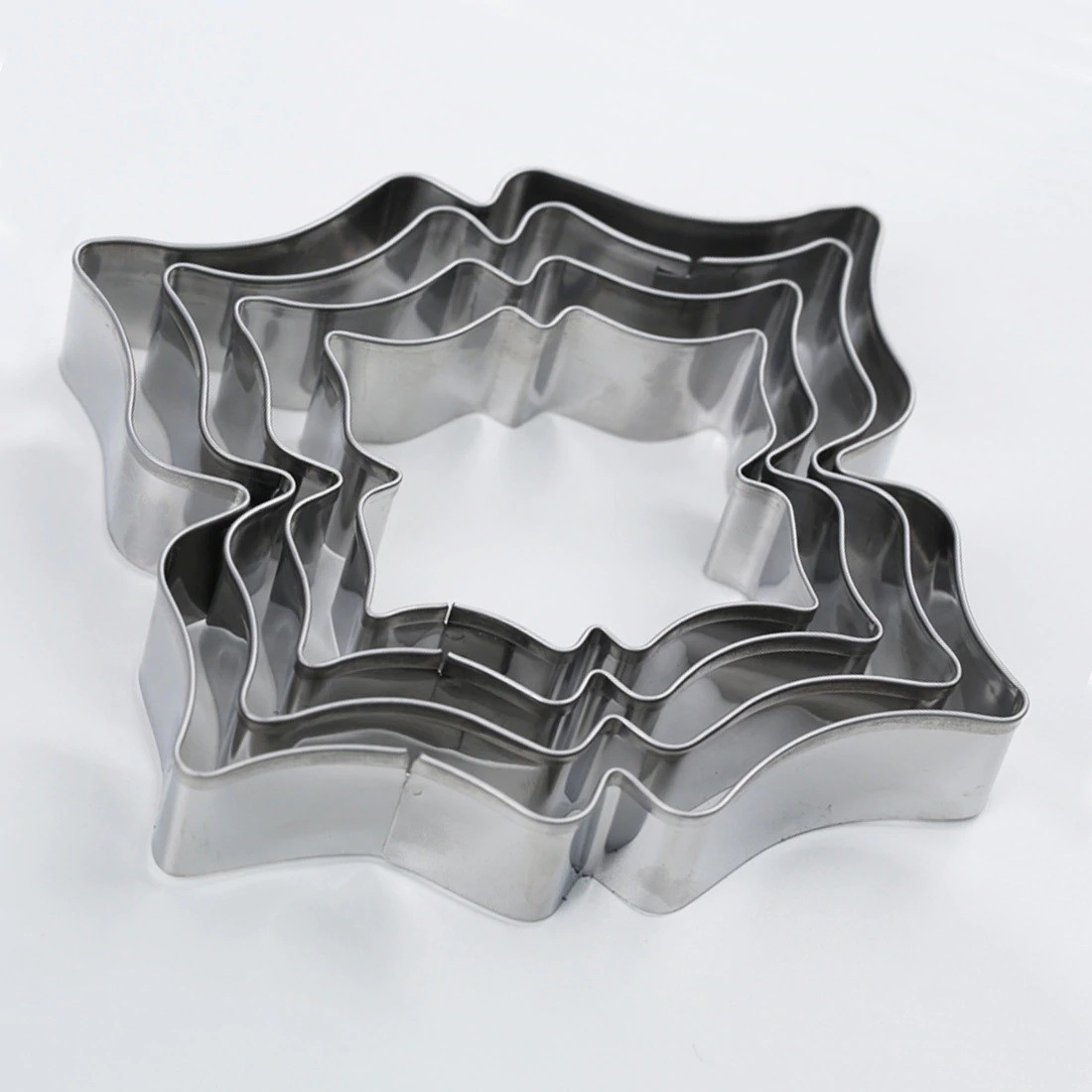 Set of 4 stainless steel cutters. The cutters can be used for any type of dough as well as cake fondant.