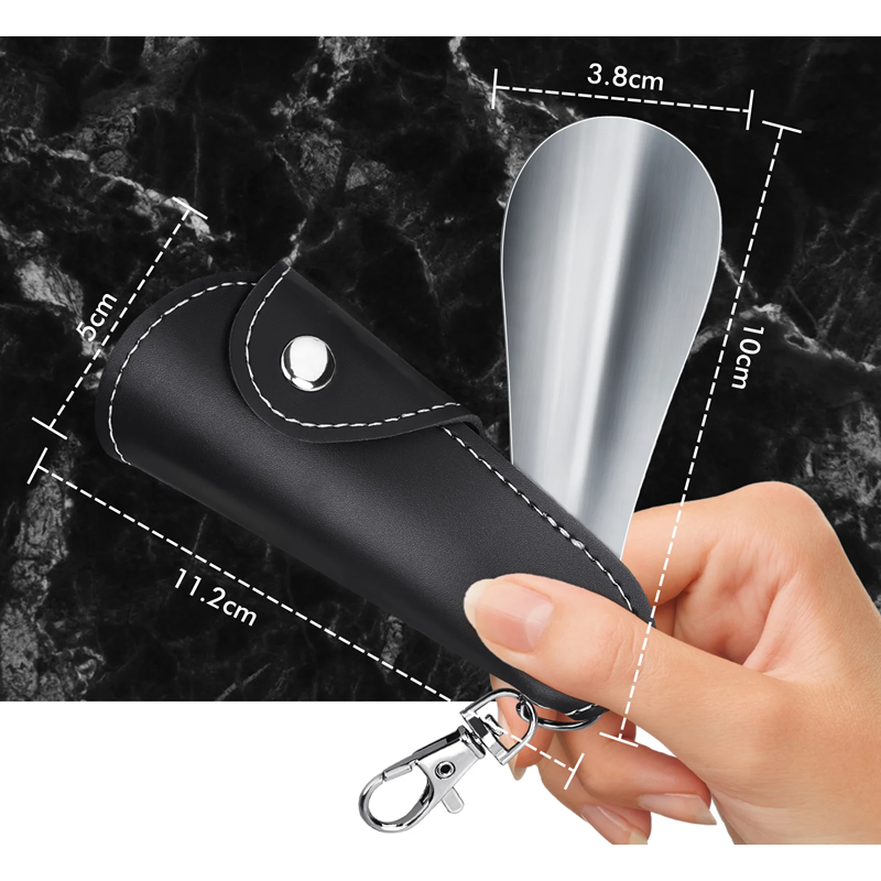 Stainless Steel Shoe Horn 10 cm with Leather Case Keyring Compact Travel Shoe Horn Practical Keychain Shoe Aid