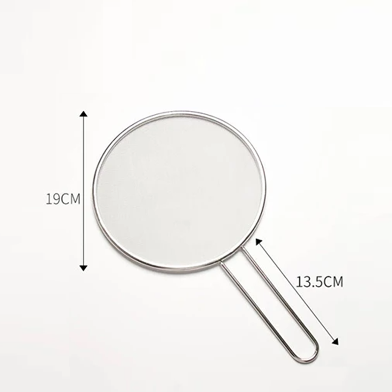 Home page Home page Home & Household Supplies Kitchen Cooking Kitchen Utensils Strainers & Sieves Stainless Steel Splatter Guard 19 cm Kitchen Sieve with Handle 13.5 cm Oil Protection Frying Pan Grill Cooking
