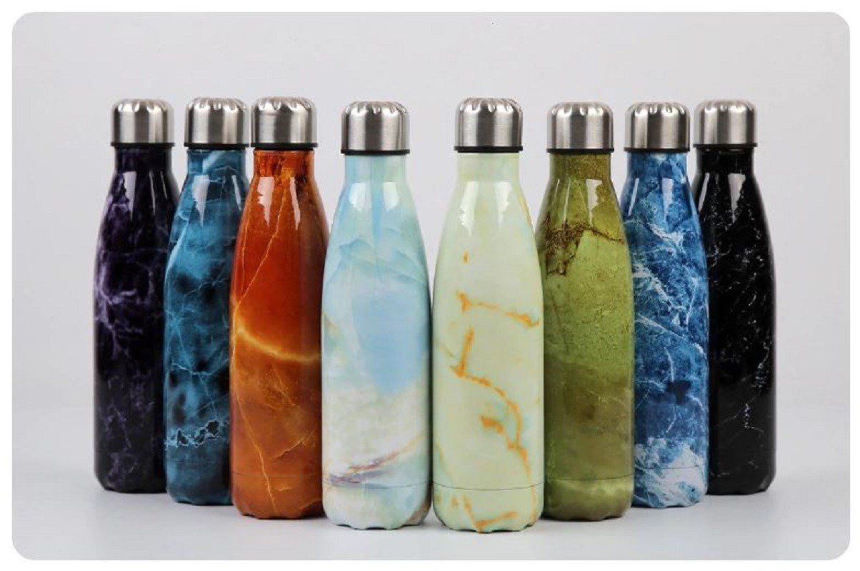 Stainless Steel Travel Bottle with Marble Design