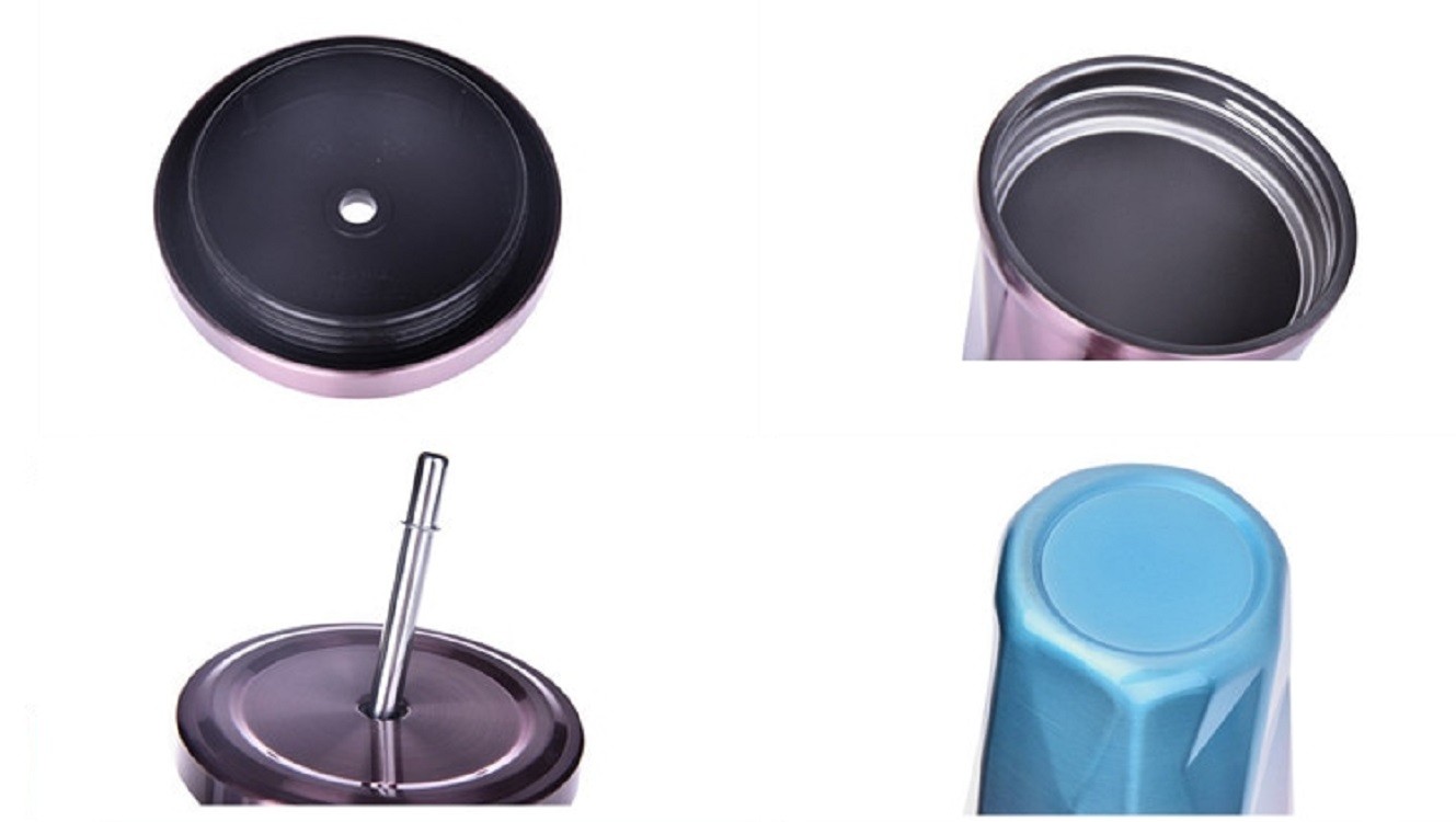 With a silicone lid and stainless steel straw.