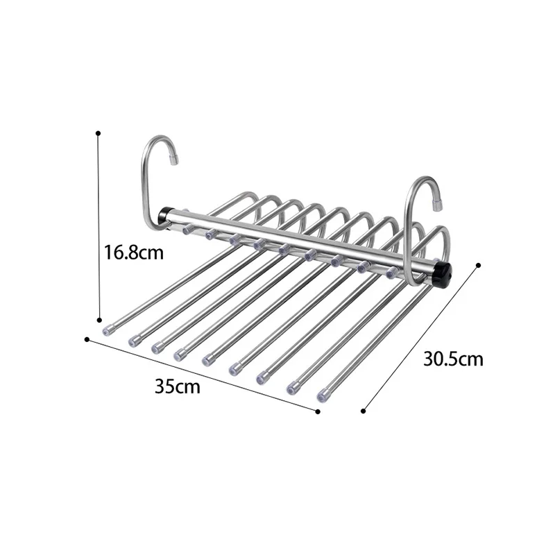 Home page Home page Home & Household Supplies Decorations & Home Accessories Coat Hooks & Hangers Stainless Steel Trouser Hanger 35 x 30.5 x 16.8 cm 9-Tier Space-Saving Hanging Organiser Wardrobe Clothes Holder Hanger