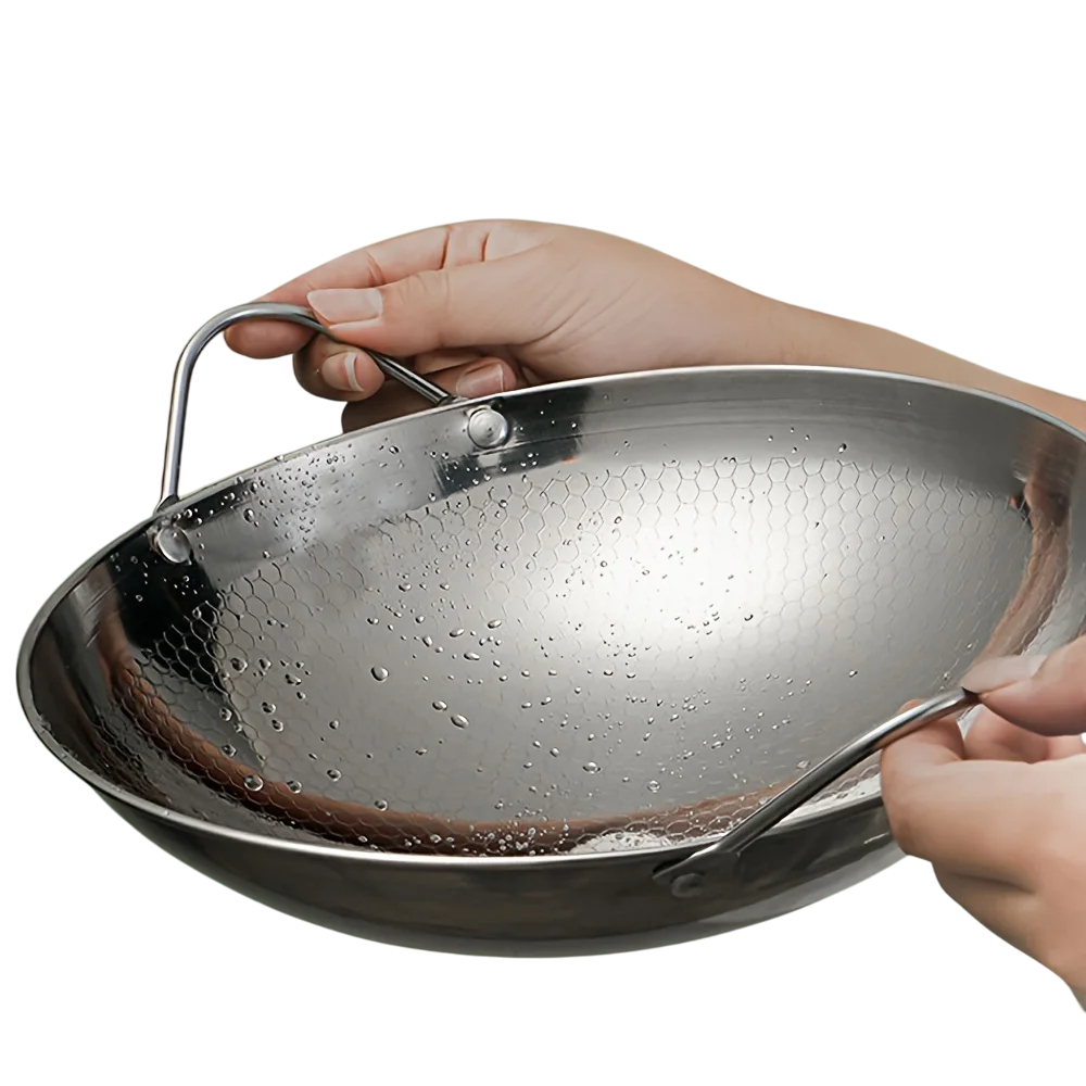 Stainless Steel Wok Pan with Handles 32 cm Hexagonal Non-Stick Surface Deep Cooking Pan for Frying and Sautéing for Induction and Gas