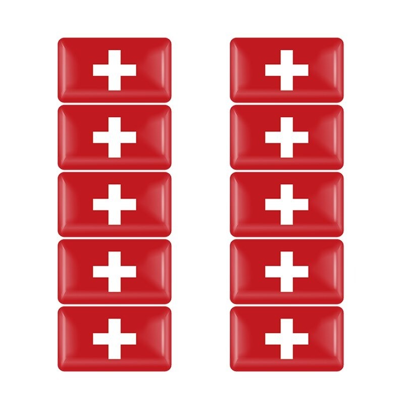 Swiss flag sticker for cars. The package contains 10 pcs. High-quality execution of the stickers. They hold perfectly in the interior. The sticker measures 18 x 11 mm.