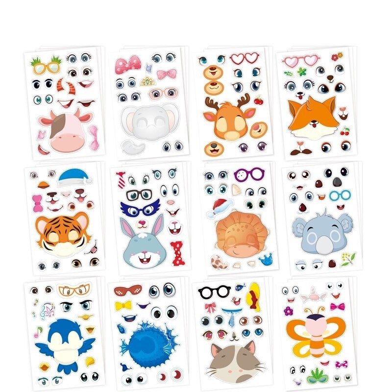 Get ready to let your children unleash their creativity with this exciting set of 6 animal and accessory stickers! Dimensions of each card are 17.5 x 10 cm. Assemble your animal with this set. The sticker set is random.