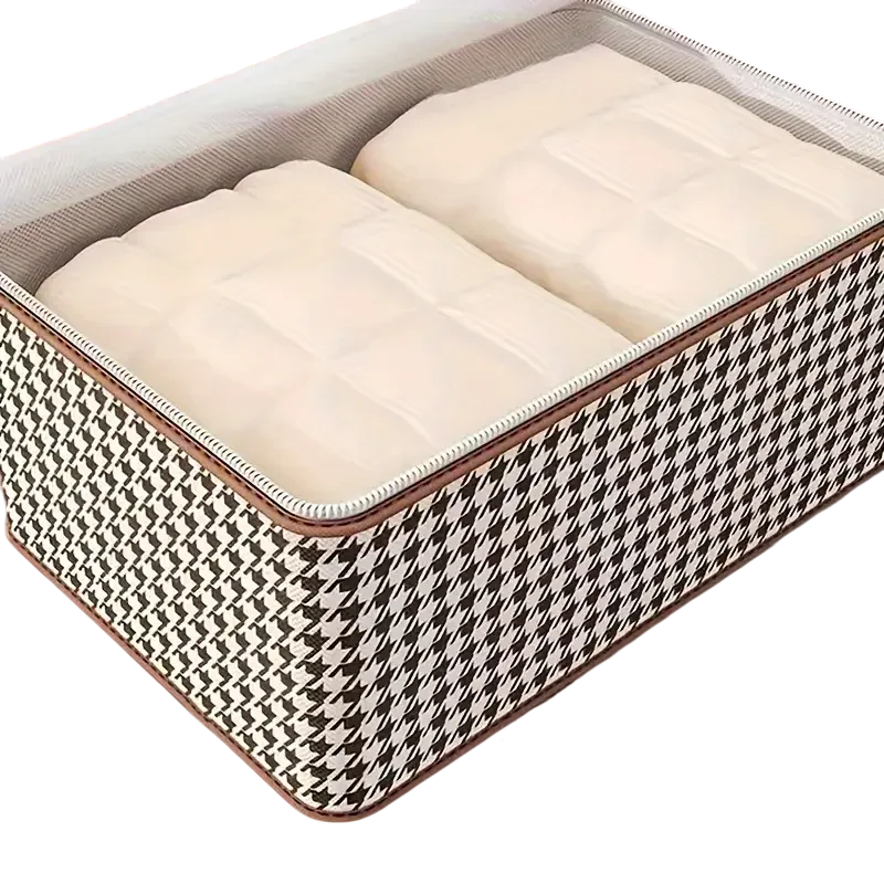 This practical bag helps keep your home clean and tidy. With its large capacity, it can accommodate bulky textiles without losing shape or strength. The non-woven fabric ensures breathability, so stored items remain fresh even after a long time. Thanks to the waterproof surface, it is also suitable for damp areas, reliably protecting your belongings from damage. Its practical use will be appreciated by anyone who wants to keep their items systematically stored and protected.