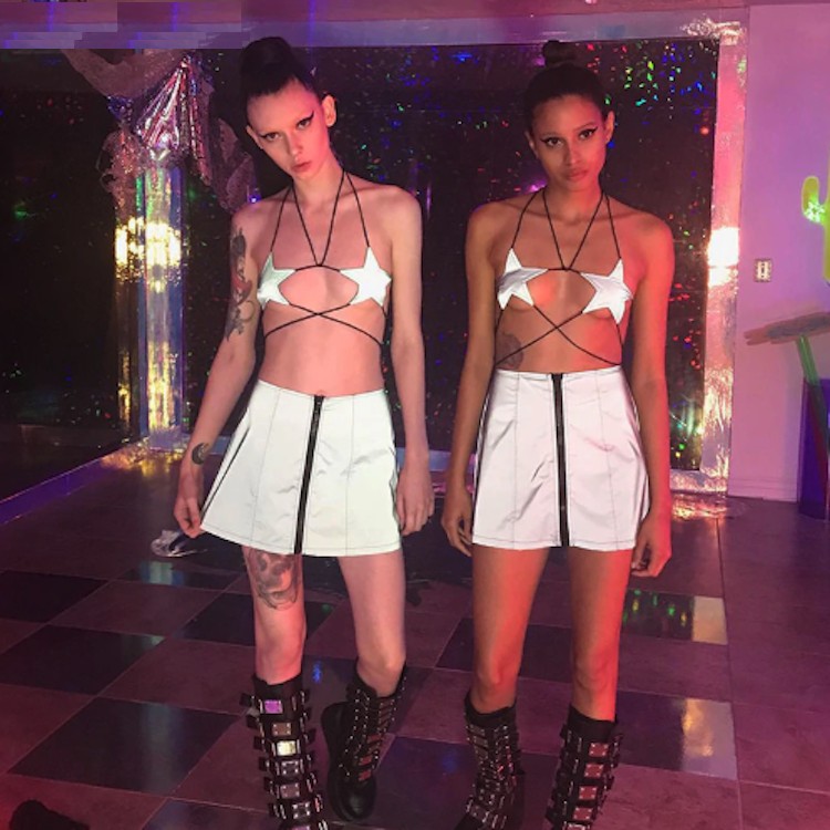 This string bra features fluorescent star shaped cups.