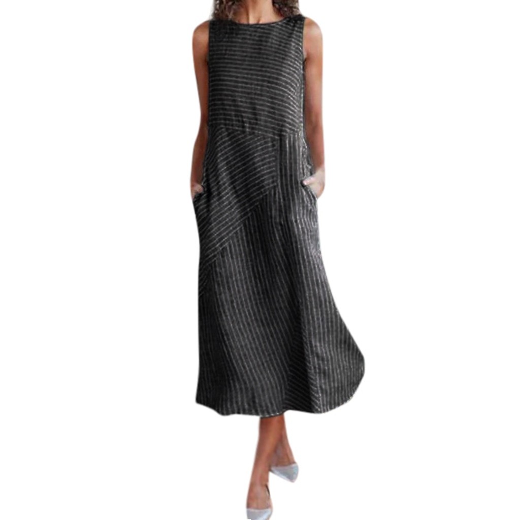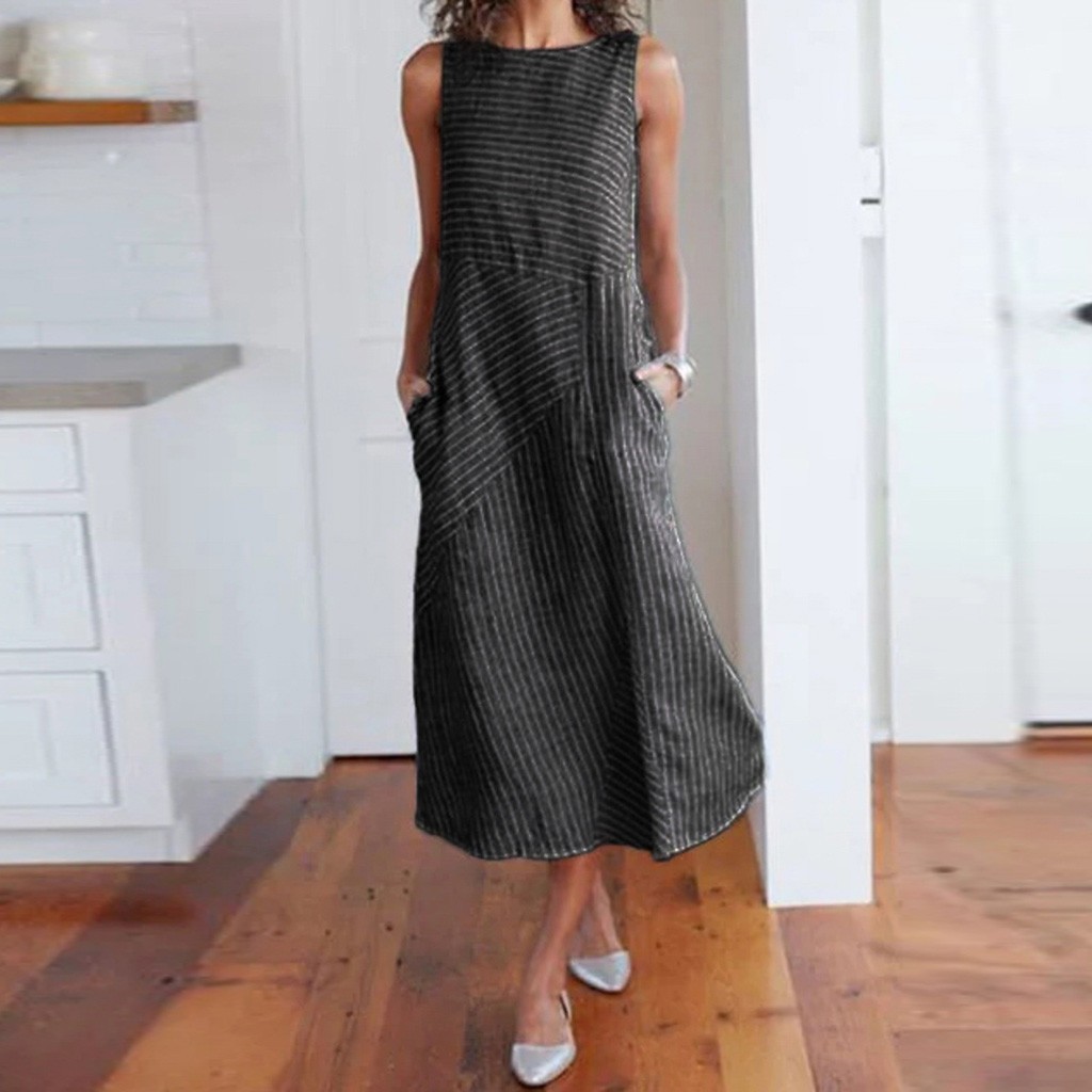 Comfortable women's dress with a striped pattern.