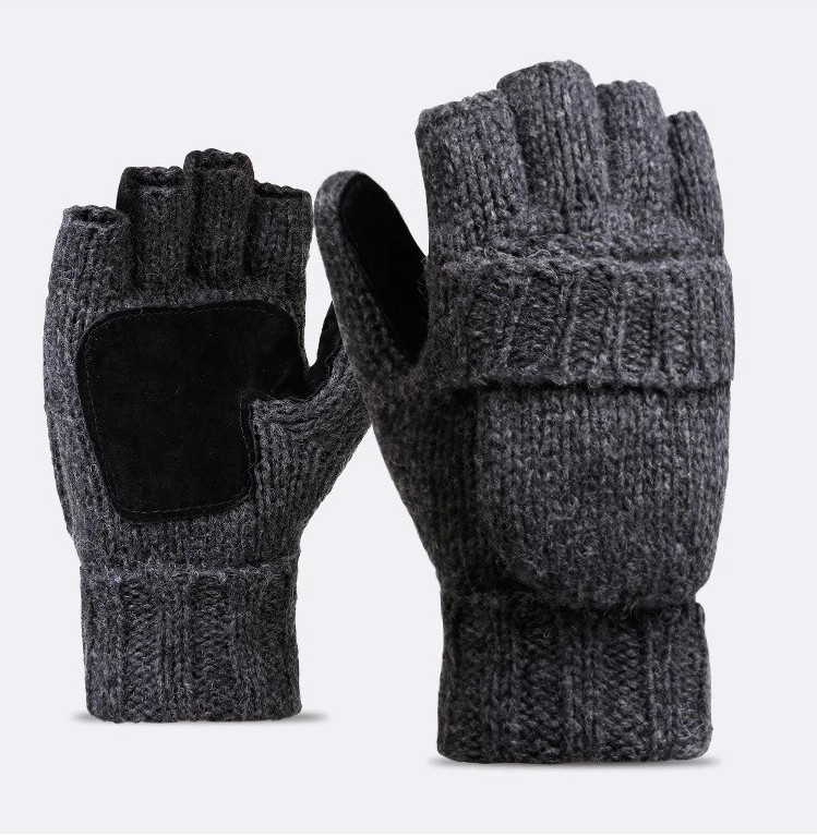 These wool gloves are 2-in-1 - you can wear them as mittens or as fingerless gloves.