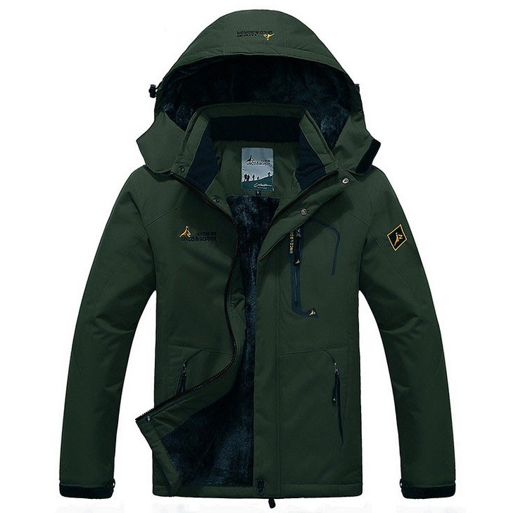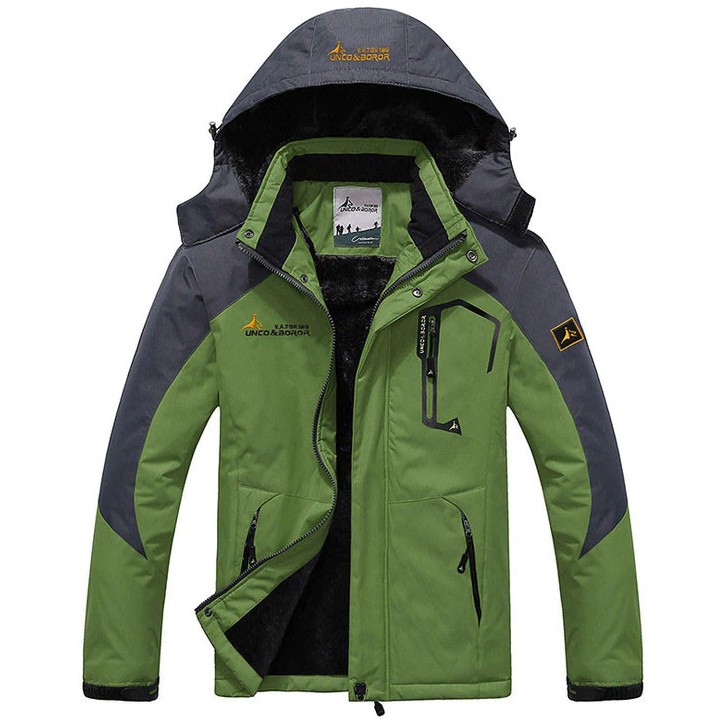 The jacket is waterproof on the outside and will keep you warm with soft cotton on the inside.