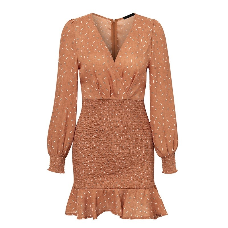 Women's dress with a smocked skirt.