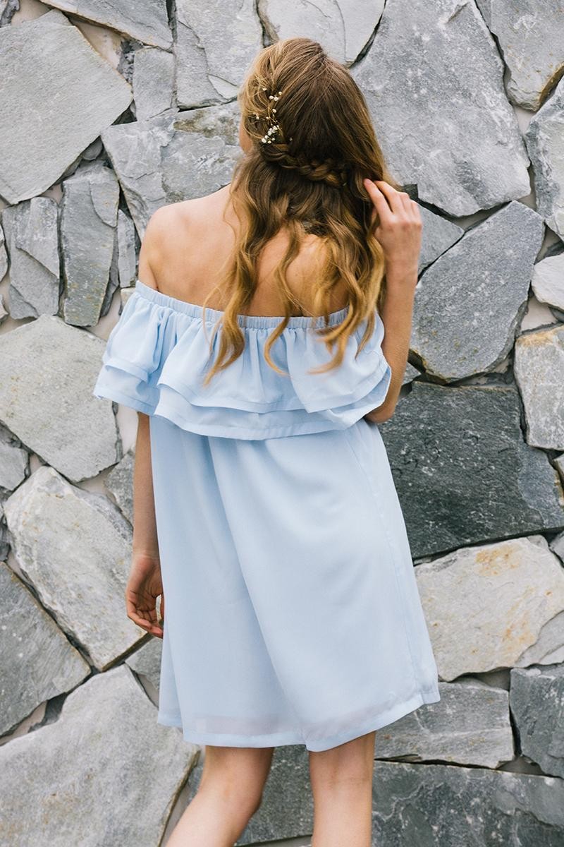 Light summer dress with off-shoulder sleeves.