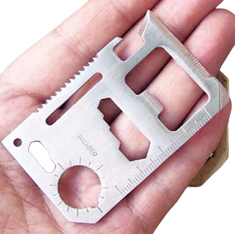 This survival card is designed for emergency use, serving as a multifunctional tool with countless applications. Its size is similar to that of a standard credit card, allowing you to carry it at all times. The card is an excellent companion for outdoor activities. The card has many uses, such as a bottle opener, serrated knife, or nut wrench. It is made from stainless steel.