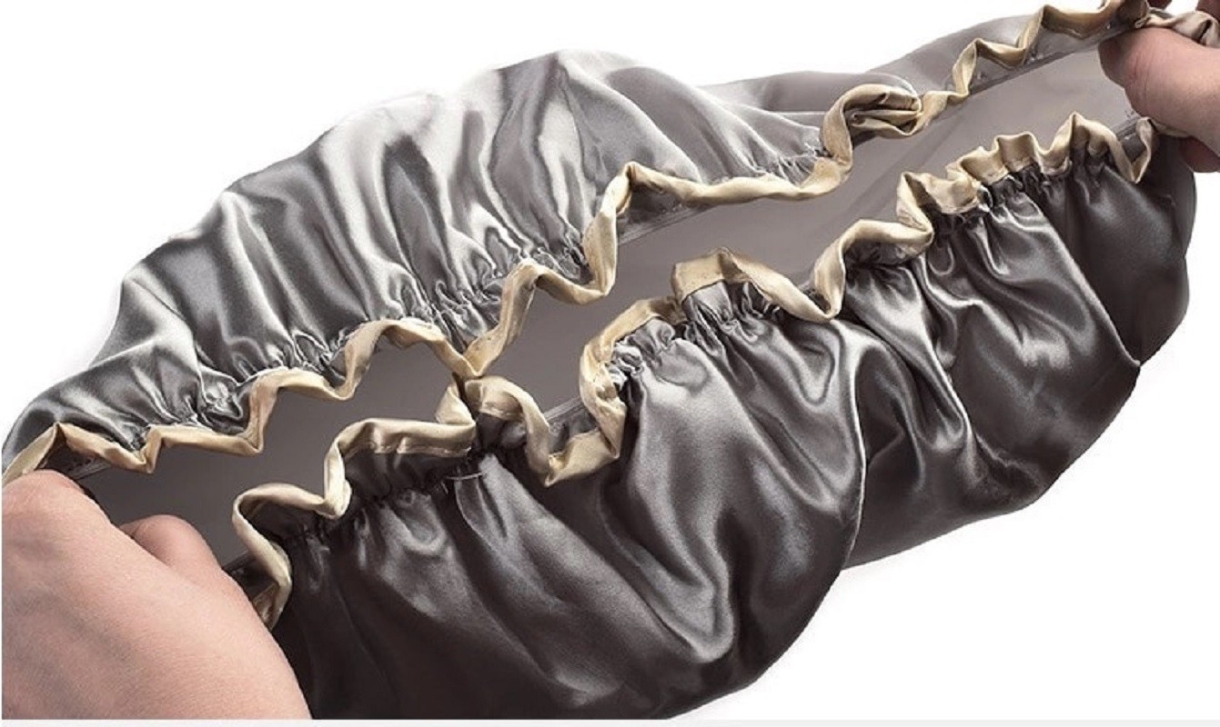 A delicate swimming cap in metallic colours.