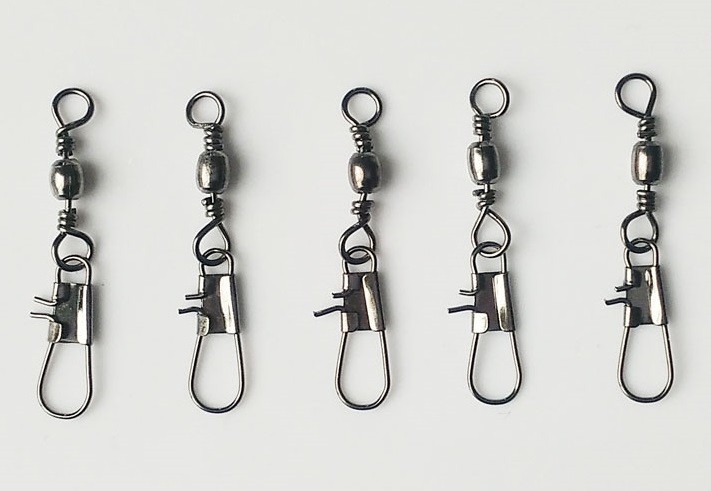 This ball bearing swivel with carabiner is designed for catching catfish, pike, and large freshwater fish.