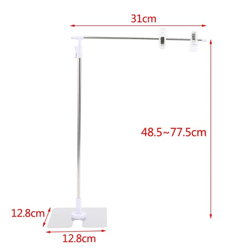 Home page Home page Photo, Audio-Video & Gaming Photography Accessories T-Shaped Background Stand Height 48.5–77.5 cm Width 31 cm Metal Holder with Plastic Clamps for Props Posters Photo Background Studio