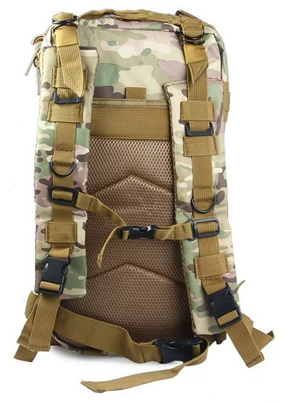 The tactical backpack is made from durable material. The very spacious main compartment of the backpack features an inner zip pocket. The middle compartment of the backpack has a mesh inner pocket.