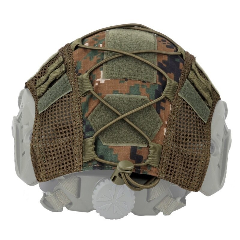 The tactical helmet cover is a fantastic accessory for airsoft or outdoor hunting. The tactical design ensures perfect blending with the terrain. It fits perfectly on any helmet.