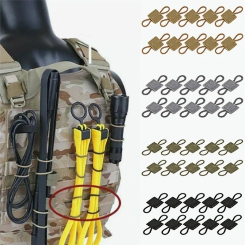 Tactical MOLLE Elastic Strap Tactical Buckles for Bag Binding Elastic Tactical Holders 10 pcs