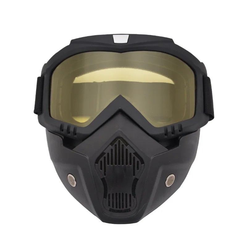 Protective tactical mask with integrated goggles protects the face during airsoft, paintball, and CS games. Also suitable for motorcyclists and outdoor activities. Full description