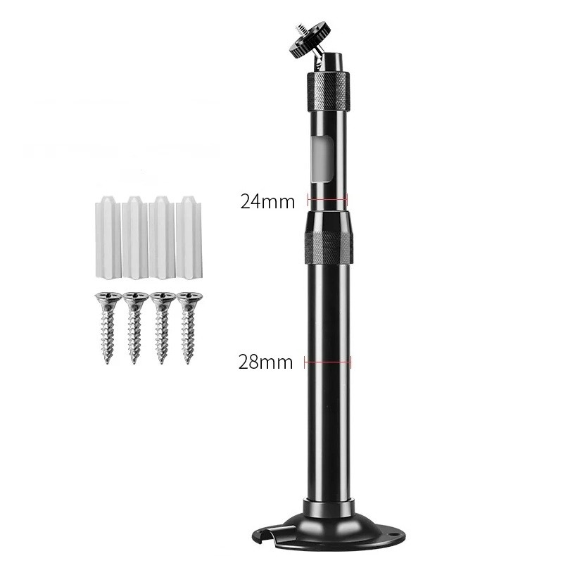 Installation is straightforward, as the mount includes a mounting kit with plugs and screws. The construction diameters of 24 mm and 28 mm provide sufficient strength and stability at maximum extension length. The mount supports a wide range of devices, including smaller projectors, CCTV cameras, and equipment compatible with standard tripod threads. The telescopic design allows for quick height adjustments to tailor the mount precisely to the needs of the space.