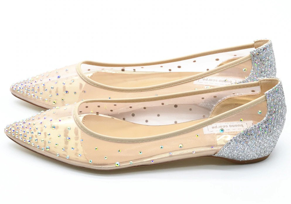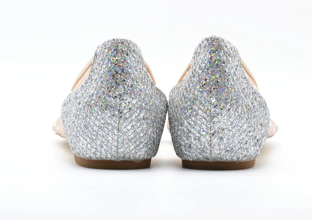 These transparent ballerinas with gems are very elegant.