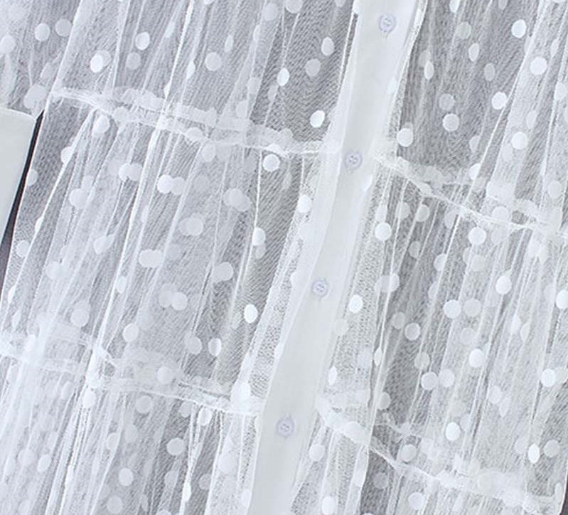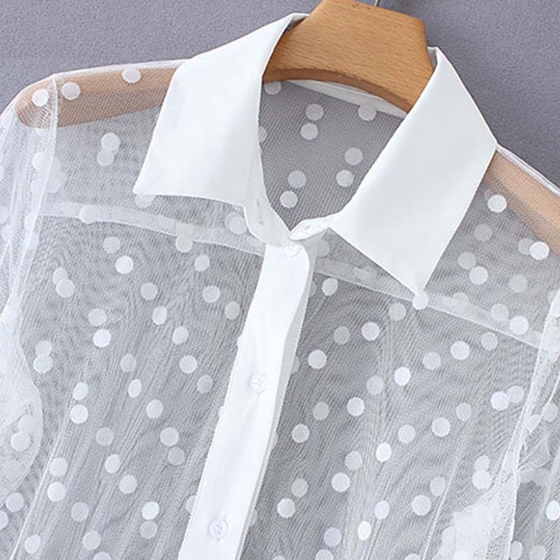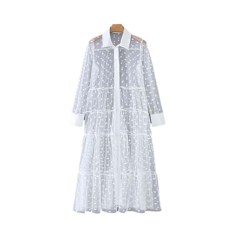 Original shirt dress made from transparent material with polka dots.