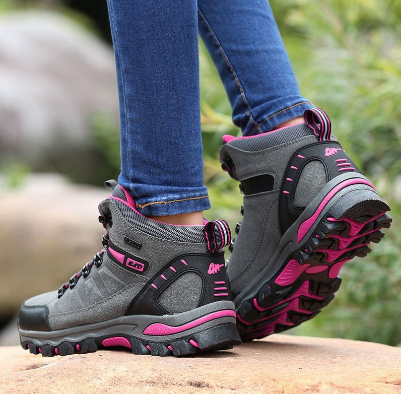 These trekking shoes are designed for long trails or climbing. The shoes have a sturdy toe and are waterproof.