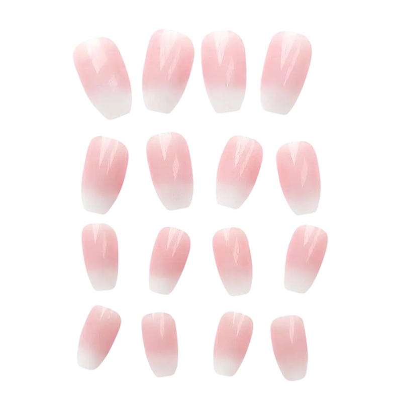 Trendy Set of Artificial Nails 24 pcs Medium Coffin Shape Acrylic Tips with Ombre Effect Extensions for Everyday and Evening Looks