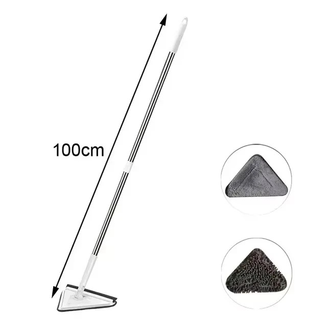 Triangular Mop 360° Rotating 100 cm Telescopic Handle Wet and Dry Cleaning Washable Cover Microfiber for Ceilings Floors Corners
