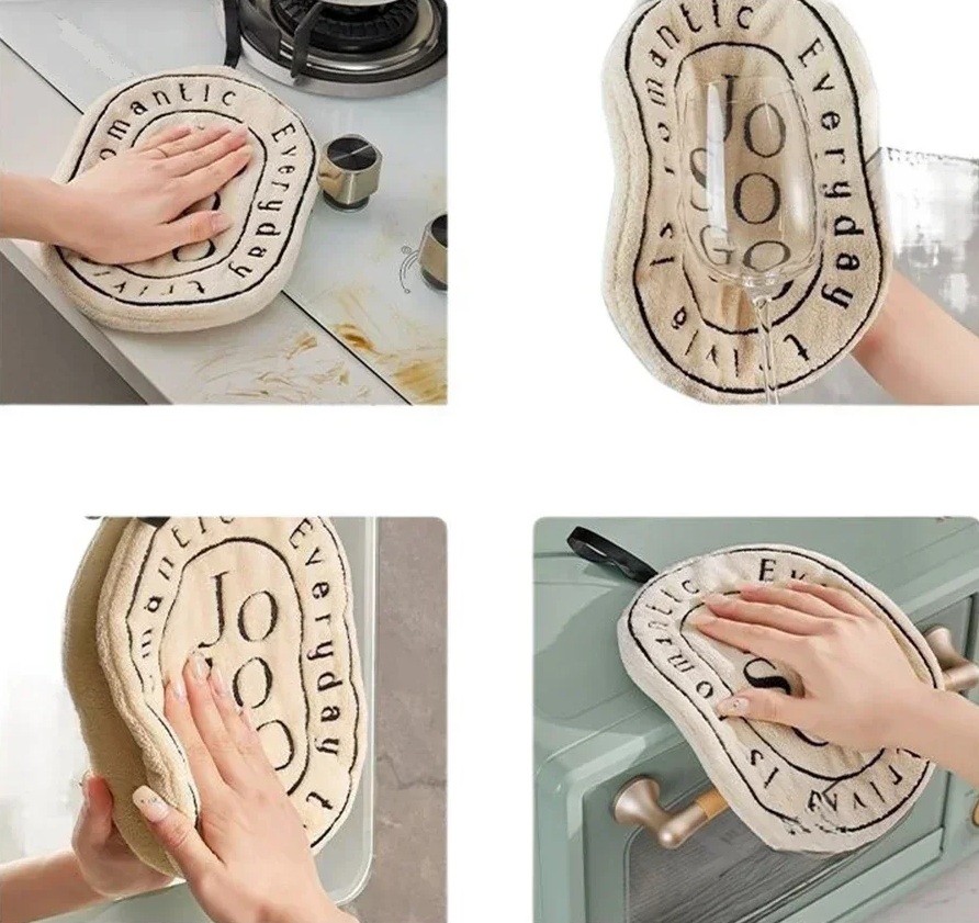 It is suitable for a wide range of household tasks – drying hands after washing, cleaning kitchen surfaces, or serving as a quick cloth while cooking and baking. The durable and absorbent material ensures effective use during daily activities and reduces the amount of textile consumed. The loop also allows for hanging within reach, keeping the towel always handy while maintaining a tidy space.