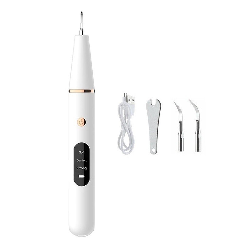 Package contents: 1x ultrasonic tooth tartar remover, 2x attachment, 1x attachment wrench, 1x charging USB cable