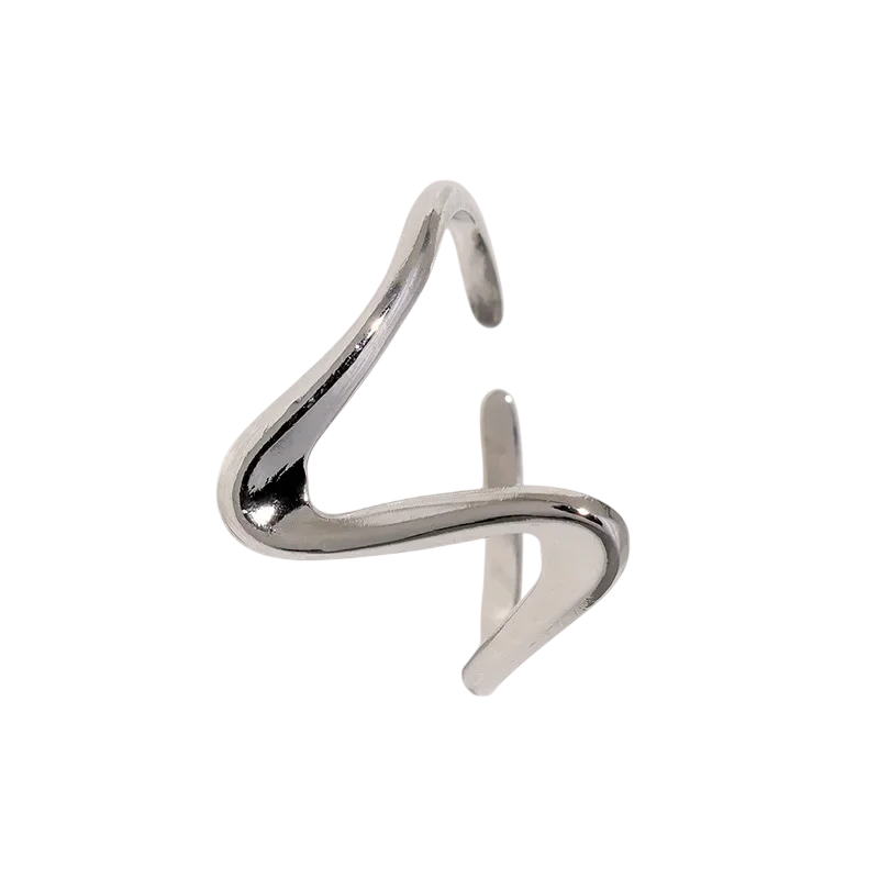 Universal Adjustable Size Open Women's Ring in Stainless Steel Elegant Modern Minimalist Ring with Abstract Line