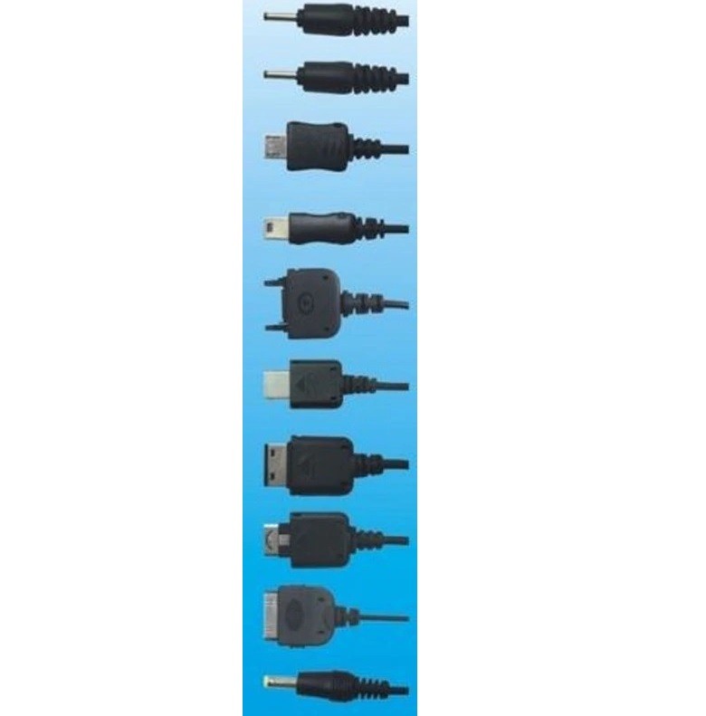 Compatible with: Nokia, Blackberry, Motorola (mini USB, micro USB), Sony Ericsson, Samsung, LG, Apple 30-pin, Kodak camera, Jack 3.5 mm, PSP