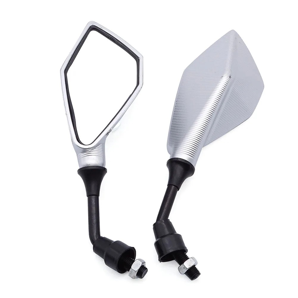 Practical and durable mirrors designed for most common motorcycles with a 10 mm thread. Thanks to the lightweight ABS plastic construction, classic design and adjustable angle, they are an ideal choice for scooters, quad bikes, and road motorcycles. They provide sufficient visibility of the situation behind you and contribute to greater safety while riding.