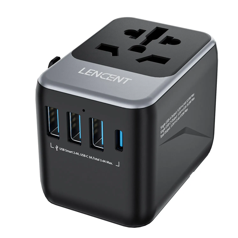 • Package Contents: 1× universal adapter with AC output, 3× USB and 1× USB-C