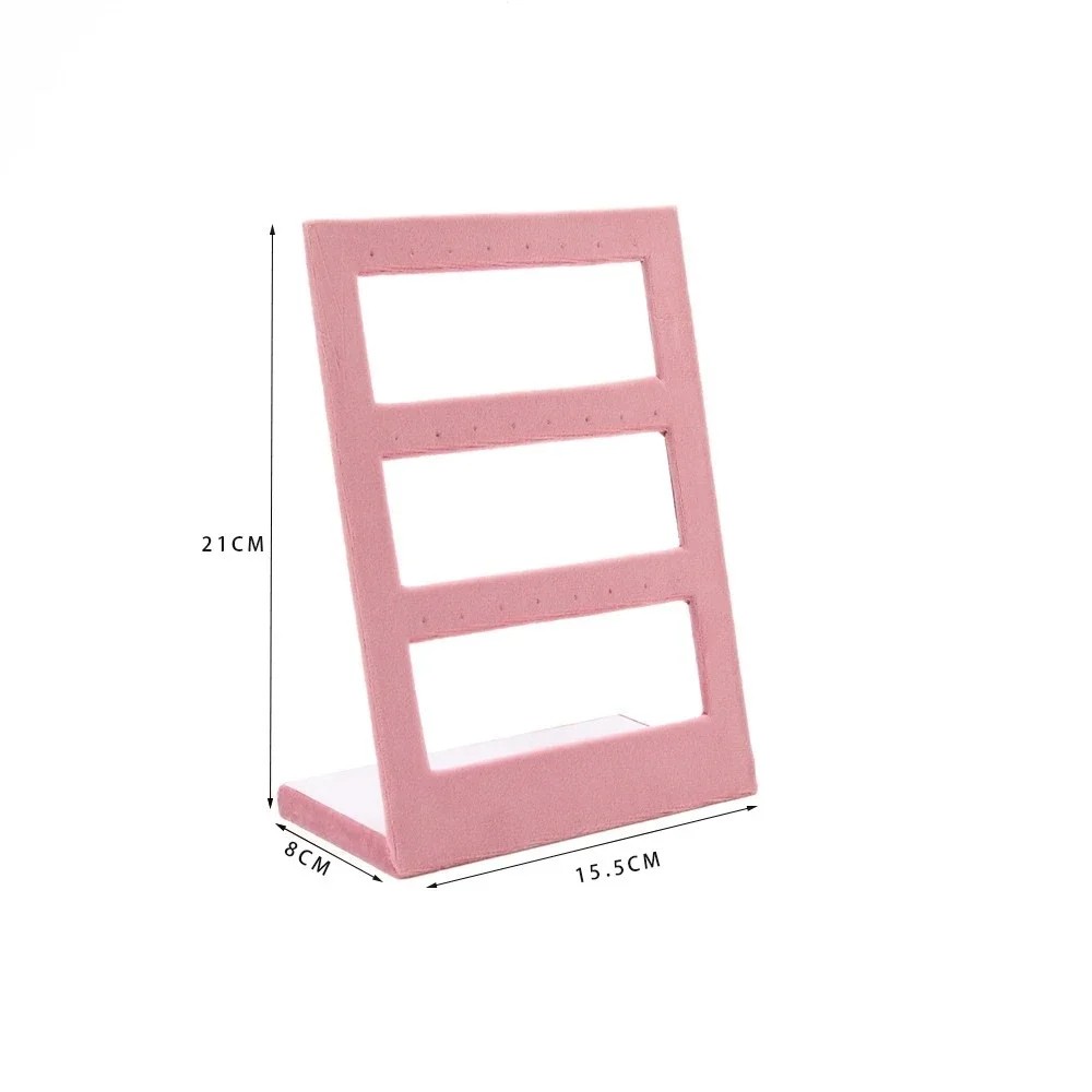 This stand is designed for displaying earrings and small jewellery items. The surface of the stand is covered with pink velvet, which creates a delicate background suitable for showcasing jewellery at home, in a display cabinet, or on a sales counter.